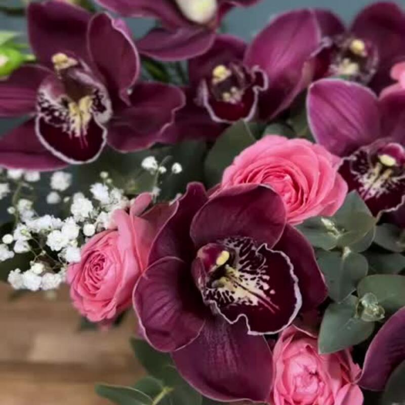 Композиция с орхидеями и розами «Тайное желание»